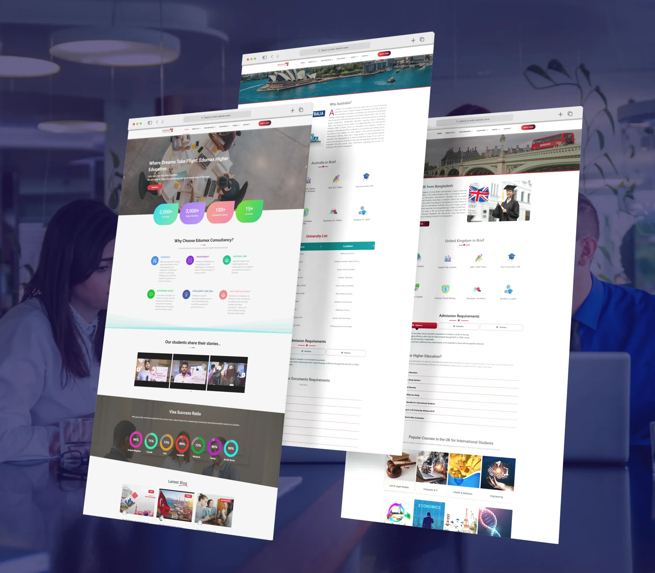 Edumax Consultancy is a modern and professional educational consultancy website designed to create a seamless and informative experience for students and parents. The site features a clean, responsive layout that makes it easy for visitors to explore study programs, admission details, and guidance services. With a focus on usability, the design ensures smooth navigation and accessibility across all devices.