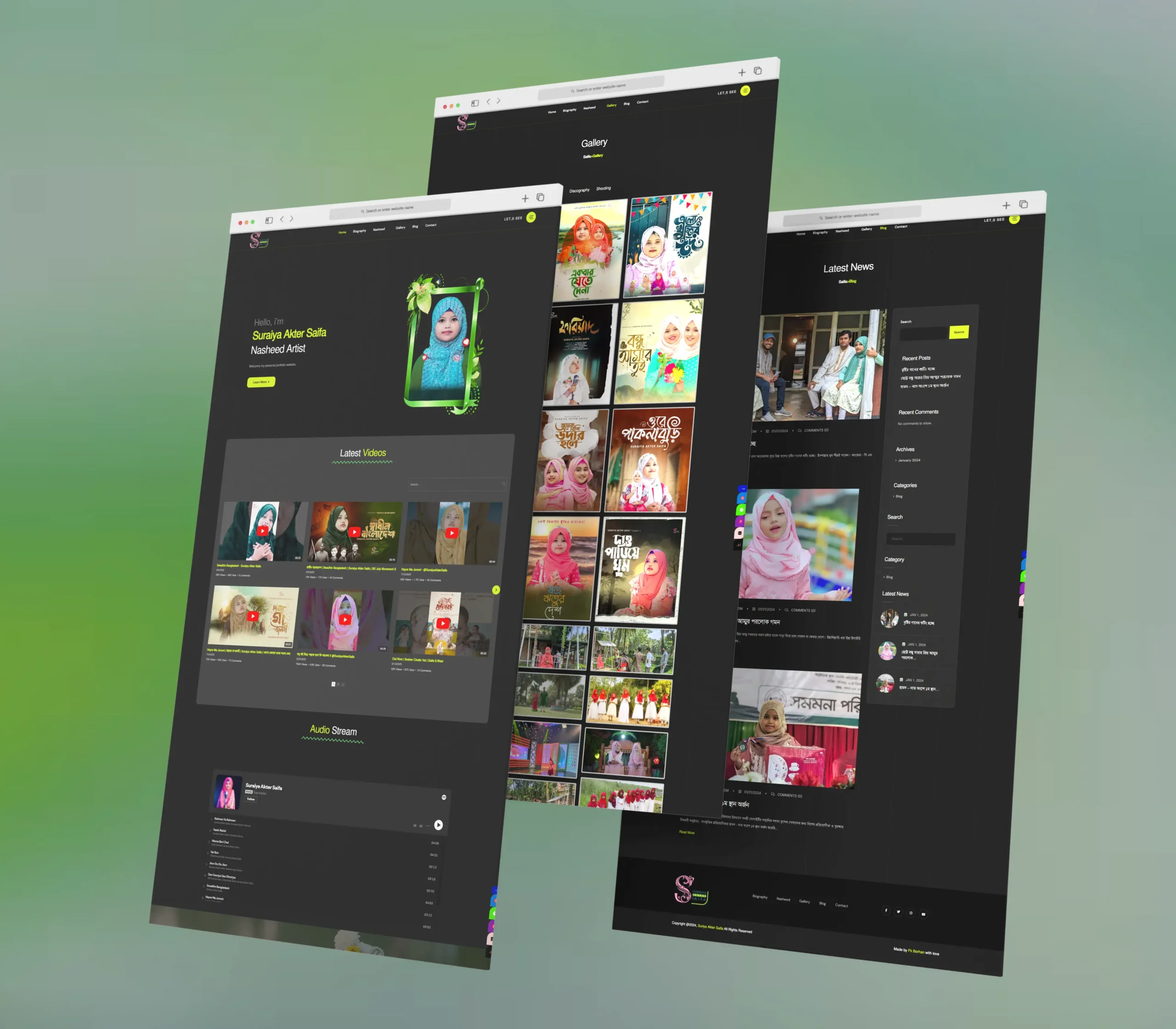 We developed a modern and responsive website for Suraiya Akter Saifa, a talented Bangladeshi Islamic artist. The design blends elegance with simplicity, making it easy for visitors to explore her biography, songs, and updates. Every element of the site reflects her artistic and spiritual identity, creating an engaging and culturally relevant user experience.