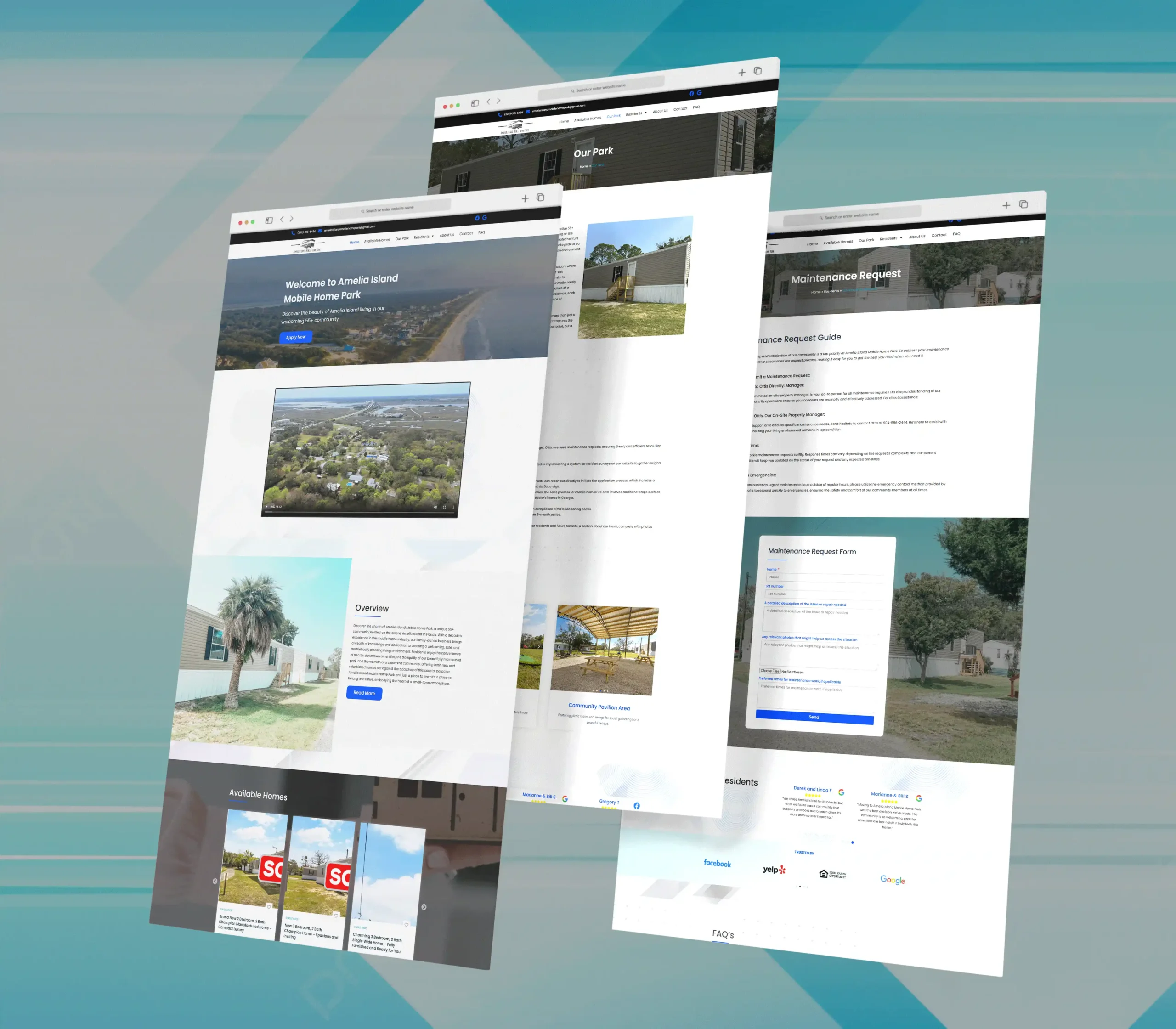 We developed a responsive and user-friendly website for Amelia Island Mobile Home Park, a family-owned, age-restricted (55+) community located at 2031 Russell Road, Fernandina Beach, FL 32034. The platform offers a clean design with intuitive navigation, allowing visitors to easily explore available homes, view photos, and access contact information.