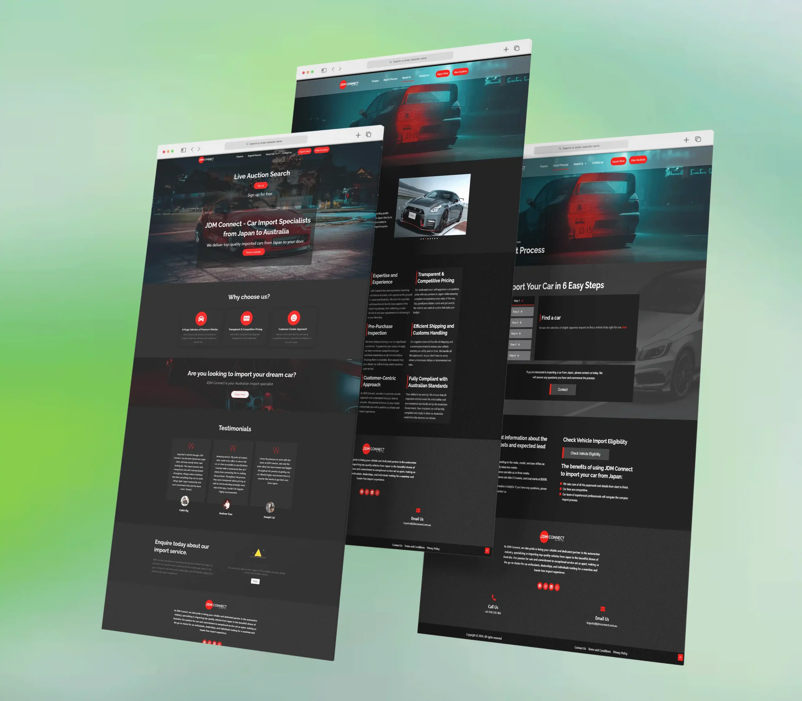 We developed a modern, responsive website for JDM Connect, a specialist in importing quality Japanese cars to Australia. The platform offers a user-friendly experience, allowing visitors to browse a wide selection of vehicles, understand the import process, and access transparent pricing.